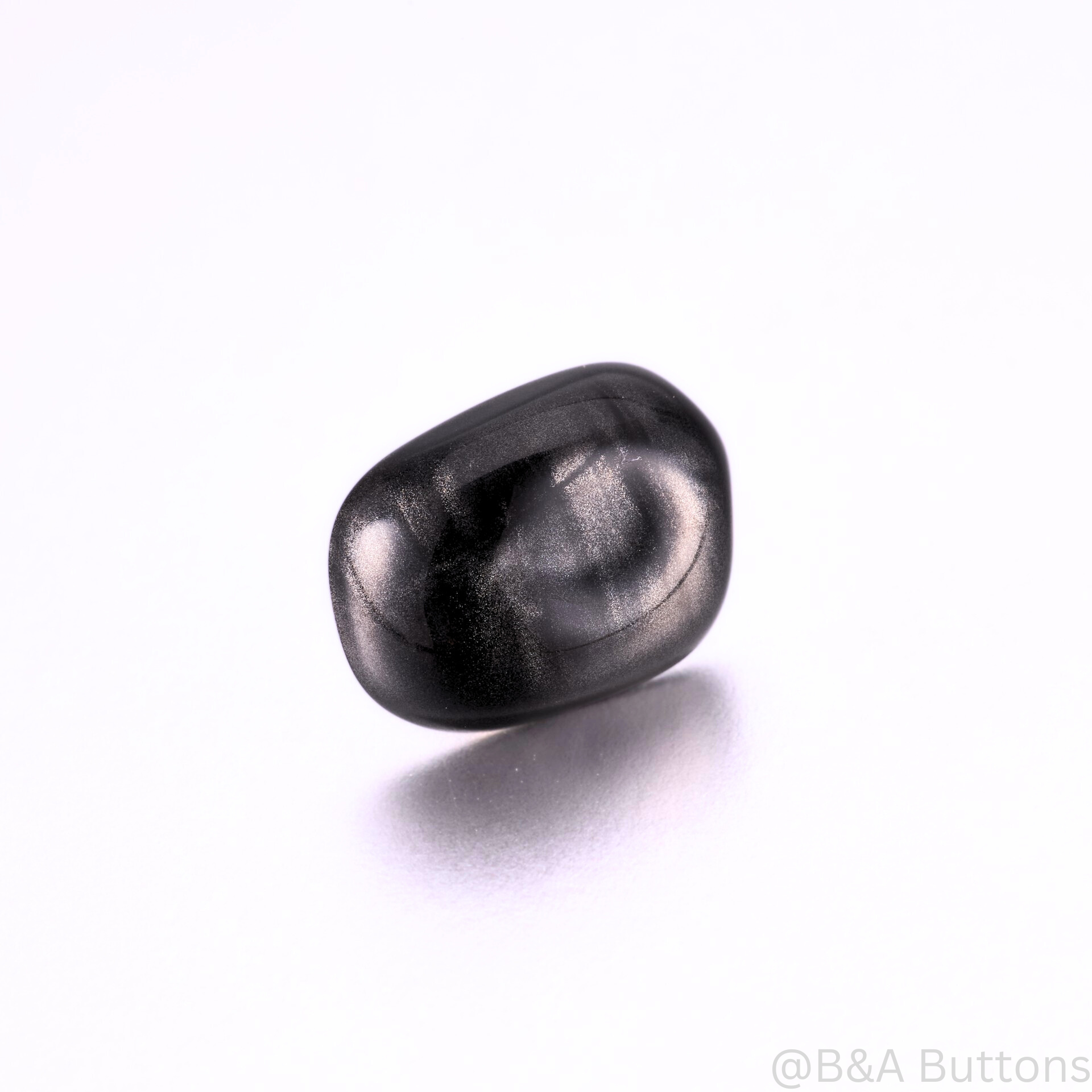 These buttons have an elegant, pearl-inspired design, with a smooth, iridescent finish resembling the natural sheen of a pearl. The frosted white button gives off a soft, glowing luster, reminiscent of the inner layers of a pearl, while the shiny black button offers a more dramatic, polished look, resembling the deep shine of a black pearl. The organic, rounded shape of the buttons mirrors the smooth contours of a pearl, and the metal loop adds a touch of refinement, ensuring both style and functionality.