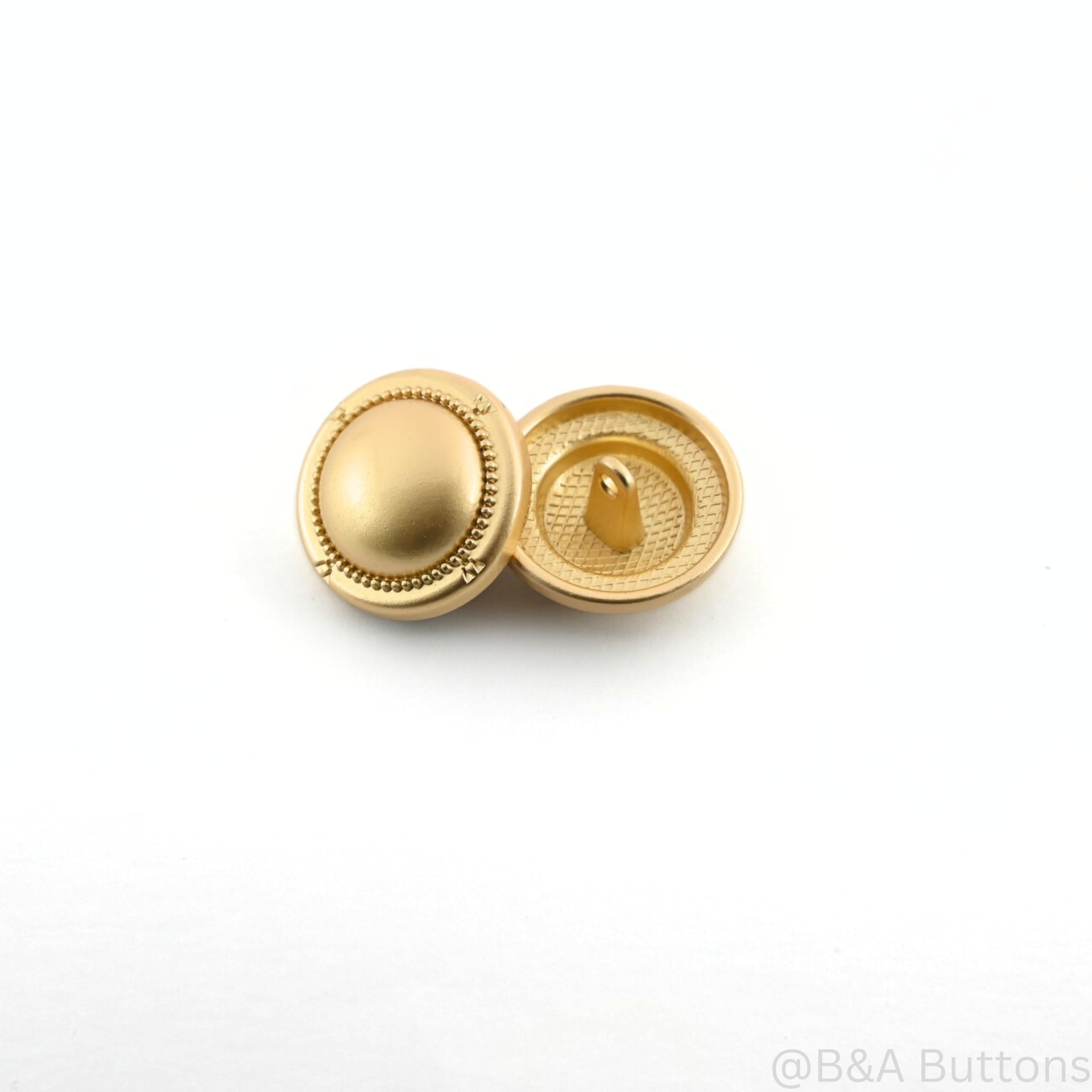 This button features a rounded, slightly indented dome design, perfect for adding an elegant touch to any garment. The soft golden finish gives it a sophisticated and modern look, while the unique texture adds depth and character.